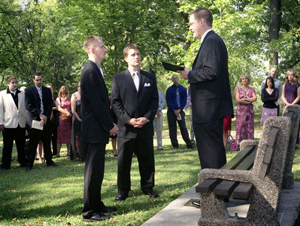 Jeff and Eric contemplate love, their future together, and the color of water, surrounded by friends and family in Minneapolis on Sept. 18, 2004.